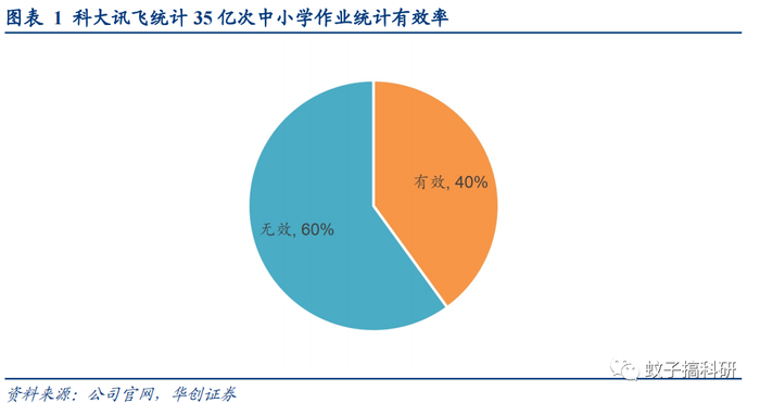 ✔ 在应试需求下,题海+纸笔就是重复性的灾难。学生在做题之前几乎无法了解一本习题集是否有效,但是做完之后时间已经成为沉没成本,科大讯飞在一项包含35亿数据的研究中证实中国中小学生作业的有效率约40%(下图)。如此之低的效率甚至好于人们日常感受。解决这一问题可以大幅度提升学生在应试制度下的时间效率;