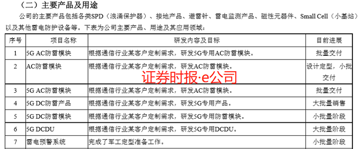资料显示,中光防雷主要从事防雷产品的研发、设计、生产和销售,防雷工程的设计和安装,并提供防雷产品和防雷工程一体化的整体解决方案。目前,中光防雷这些产品包括各类SPD(浪涌保护器)、接地产品、避雷针、雷电监测产品、磁性元器件、SmallCell(小基站)以及其他雷电防护设备等,广泛应用于通信、航天国防、铁路与轨道交通、电力、石油石化、新能源、工业自动化、建筑等基础产业及新兴产业。