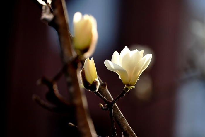 玉兰、紫玉兰杂交而成的园艺品种,有一个很好听的名字叫“二乔玉兰”。“二乔玉兰取名自古代美人大乔小乔之名,玉兰花落之时,二乔玉兰便登场了,就好像玉兰完成了探春的使命,二乔款款而至。”莫非说。