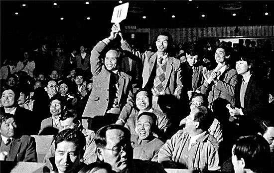 在深圳改革开放展览馆内,深圳第一块土地拍卖实景的还原场景吸引了不少人驻足观看。