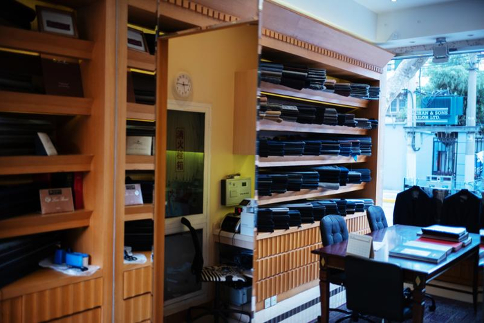 下午2点,茂名南路上的W.W.Chan & Sons Tailor,沿街的整排玻璃使得店面看起来气派又亮堂。