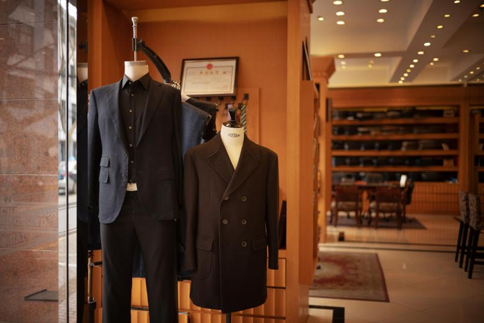 到徐师傅的店里定制西装从3000多元到2万多元不等,一口价,带一件定制衬衫。
