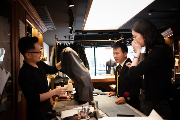 “但我真的不喜欢客人和我们讨价还价,这件事到现在都很不适应。我们做好一套西装,一部分是面料的钱,还有一部分是手工的价值,客人到底是想省哪部分的钱呢?我真的不理解。”坐在工坊办公桌前的老江看着小邓忙碌的背影,沉吟半晌,对记者说道。