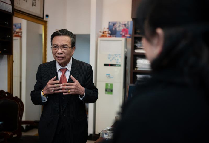 2021年3月25日午后1点,78岁的徐俊馥戴着金丝边眼镜,穿着仔细熨烫的黑色条纹西装三件套,从闵行的家里出发。坐了一个半小时的公交车,他来到位于北京西路的Wise高级洋服店上班。这天,他比往常提早半个小时到店,因为老客人要提前上门拿衣服。