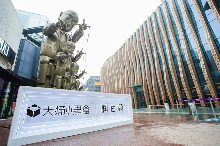 比如在这次润百颜×天猫小黑盒的合作中,就创新性地把新品打造成了艺术品,在线下成为
