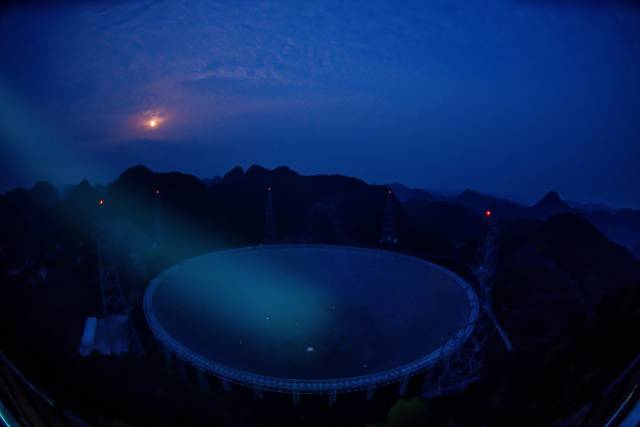 3月29日拍摄的夜幕下的“中国天眼”。