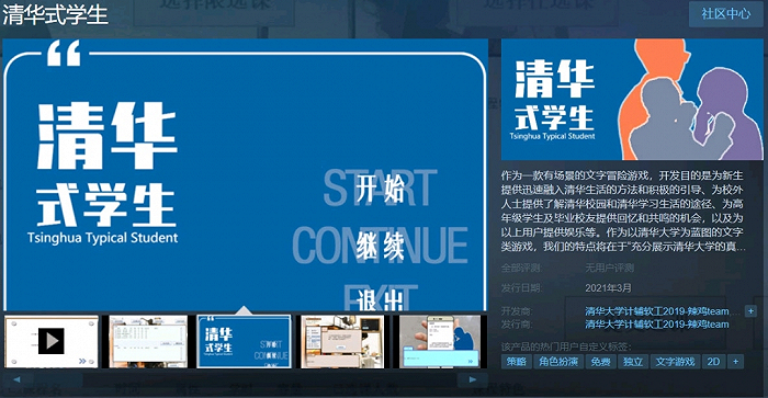 大概是半个月前,一款叫做《清华式学生》的模拟类游戏上架steam也引起了不少话题性。