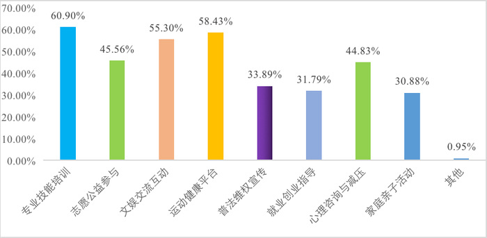 在诉求方面,调研发现,青年围绕职业技能、专业知识等方面的提升,在公共服务、创业扶持、就业支持等方面都有迫切的发展诉求。