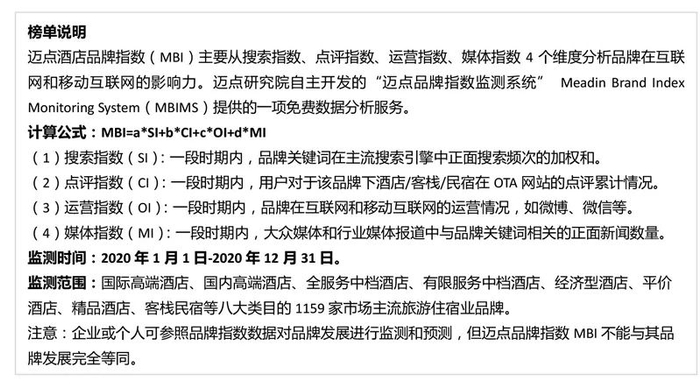 经过十余年的互联网大数据沉淀,迈点研究院建立了完整的商业空间产业大数据平台库,涵盖投资开发、品牌建设、运营管理、客群营销等多个版块;与品牌中国战略规划院、人民在线、TalkingData战略合作;覆盖6000家旅游住宿品牌、100000家城市单体酒店、10000家景区乐园品牌、 2000家住房租赁品牌、 2000家商业办公品牌、1000家物业品牌以及 30000家上下游产业链服务商品牌等……