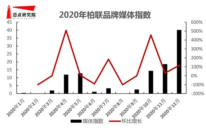 养生酒店10强榜单中,柏联媒体指数表现优异,2020年监测范围时间内平均媒体指数为8.93。指数变动来看,呈现明显峰谷波动,1月抵谷,12月触峰。柏联在迈点网、环球旅讯网、搜狐网、搜狐网、网易网等媒体宣传平台的品牌相关新闻约为132条,涉及品牌获奖、养生特色、门店布局等。