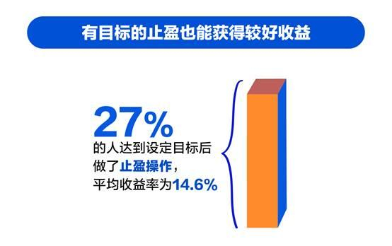 市场震荡之下,追涨杀跌、频繁交易的操作也更加普遍。面对行情的冲击,支付宝理智库的一季度投资者信建议,投资人可以设立自己的盈利目标,当目标实现时及时止盈,落袋为安。《一季度基民报告》显示,偏股型基金投资者中,有近3成的人有止盈操作,平均收益率为14.6%。