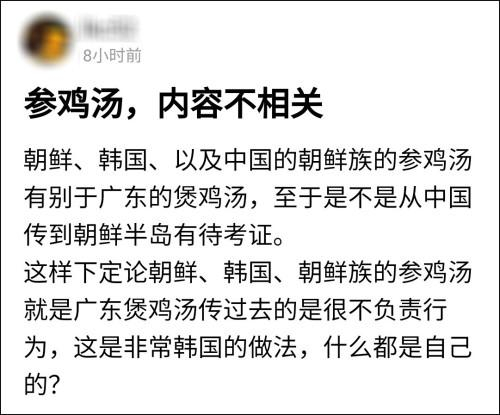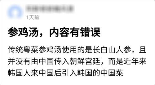 百度百科称参鸡汤起源中国,又遭到韩国媒体质疑了