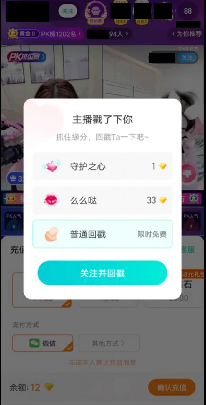 (映客直播在充值页面做出提示,但也会弹出主播诱导消费框)
