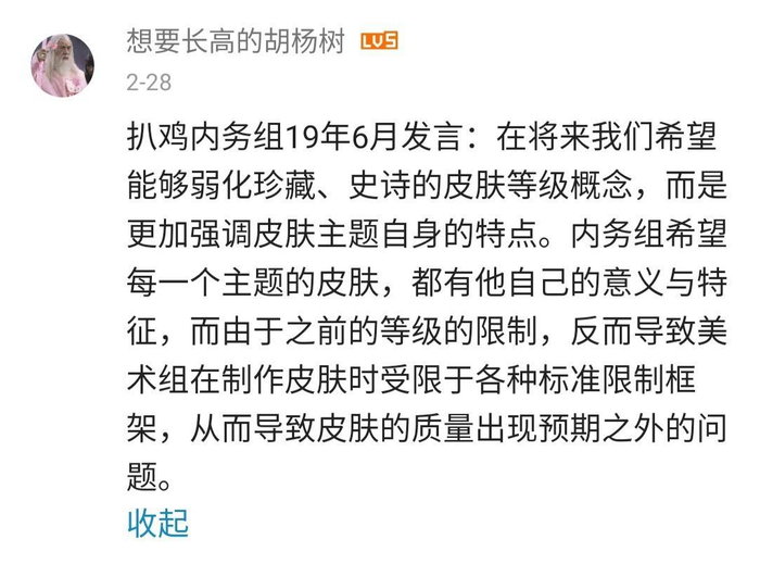 葡萄君:做一些等级低、表现少的皮肤会不会比较轻松?像韵彩皮,看起来只是染个色。