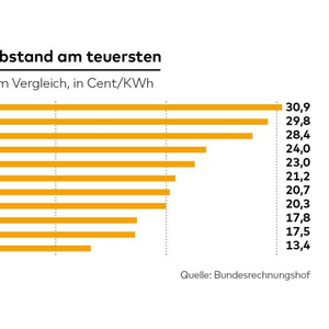 与此同时,未来电价极有可能将继续上涨,联邦审计局在报告中指出,从2020年到2025年,包括电网扩建在内的电力供应额外还需要5250亿欧元的投入。而眼下,德国的家庭用电价格已经比欧洲平均水平要高出43%。报告称,长此以往,不仅德国的营商环境将遭受负面影响,家庭和企业的财政负担也会过重。
