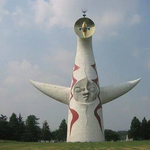 那么,战后日本艺术家冈本太郎的1970年的大阪世博会太阳之塔,背后的意识还是“日本是神国”吗?太阳之塔是日本经济腾飞年代留下的建筑符号。塔上有四个面具:塔顶是光芒四射的“黄金之面”,最底端“地底之星”则照耀着“逝去的世界”,中央是“太阳之脸”和“暗黑之星”注视着广场。塔的内部则也展现出神秘的气氛,让参观者感觉置身于远古时代的祭祀舞会现场。太阳之塔以其神秘的力量使得作家森见登美彦感受到“异次元宇宙的气息”,并促使他写下处女作《太阳之塔》。