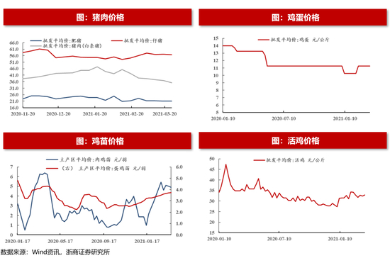 禽类:肉鸡苗价格下跌2.00%,蛋鸡苗价格上涨0.54%,活鸡批发价上涨1.48%,鸡蛋批发价与上期持平。
