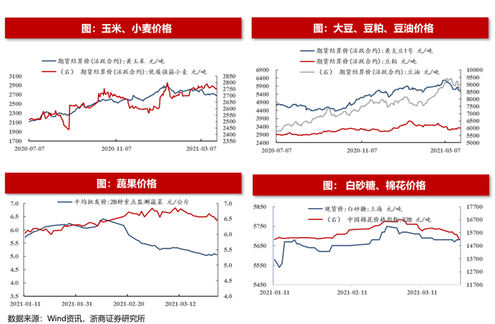 其他:上海白砂糖现货价格下跌0.18%,中国棉花价格指数下跌3.39%。