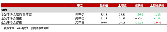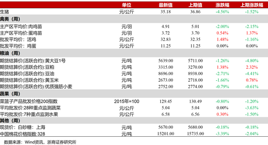 猪肉:猪肉价格下跌4.56%,肥猪价格与上期持平,仔猪价格下跌0.72%。