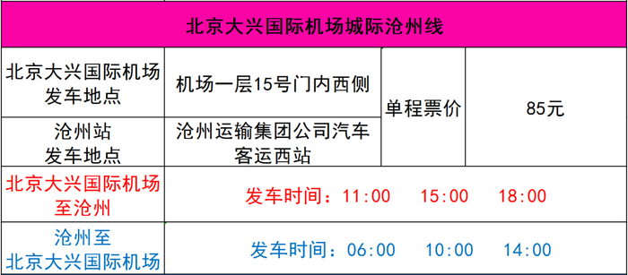 今天(4月1日)北京大兴国际机场发布通知,将于4月2日增加机场城际保定、沧州班线运营班次,具体信息如下图: