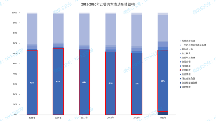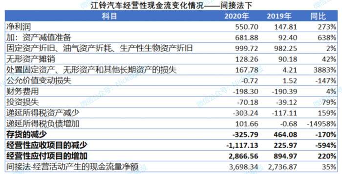 从间接法下的经营性现金流来看,2020年经营性现金流净额同比增长35%的原因在于应付项目的大幅增加以及净利润的显著增加。尤其是绝对数较大的应付项目同比增长220%,对经营性现金流的影响最为显著。也就是说,在现金流量表日,江铃汽车推迟了现金付款,在一定程度上“粉饰”了经营性现金流水平。