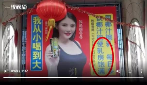 同年3月18日,“国家广播电视总局”微信公号消息称,经总局监看发现,一些电视台播出的“椰树牌椰汁”部分版本广告“片面追求感官刺激、宣扬低俗内容、违背社会风尚,价值导向存在偏差,易对广大受众尤其是未成年人产生误导”,违反了《广告法》《广播电视管理条例》《广播电视广告播出管理办法》等规定。