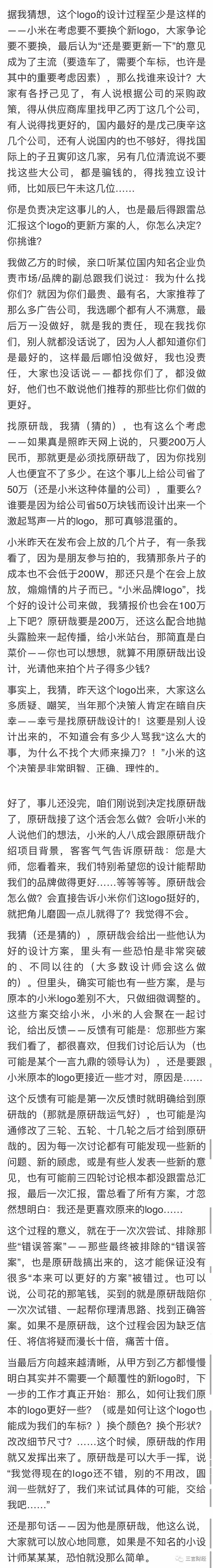 他认为所谓的“Alive概念”都是设计完了给的说辞。假如小米LOGO新旧颠倒过来圆角换直角,还能换另一套新的说辞。