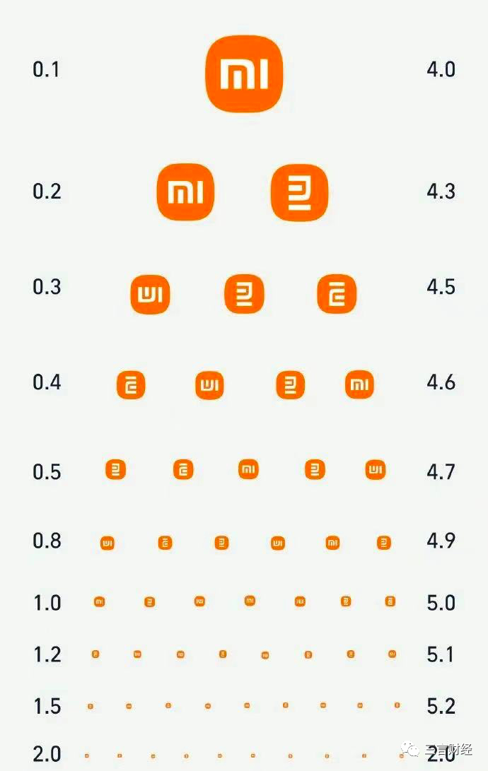 还有人将小米新LOGO制作成了视力测试表以及找不同。