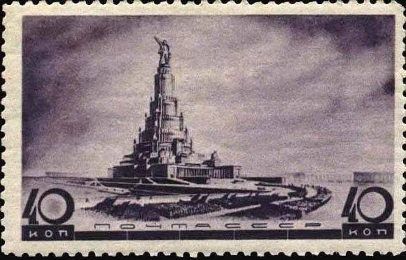 一张邮票里高过埃菲尔铁塔、自由女神像和帝国大厦的苏维埃宫/Wikipedia
