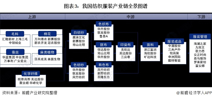 原标题:预见2021:《中国纺织服装产业全景图谱》(附产业链现状、区域分布、发展前景等) 来源:前瞻产业研究院