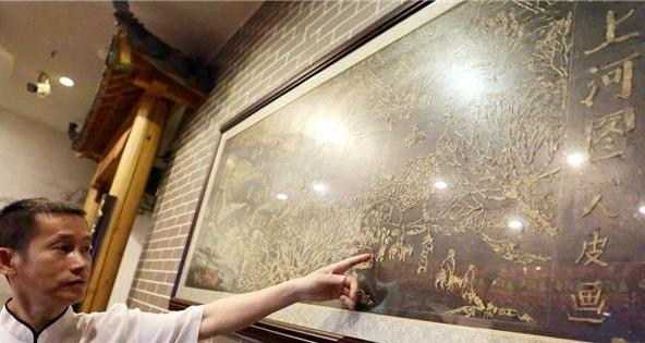 而近期做的一幅《清明上河图》脚皮画