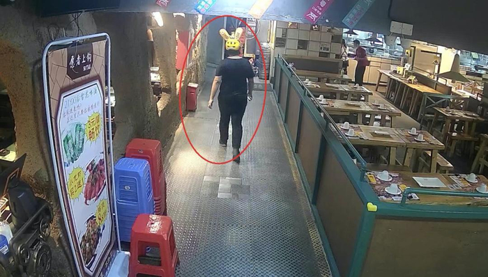其中一男子出门透气