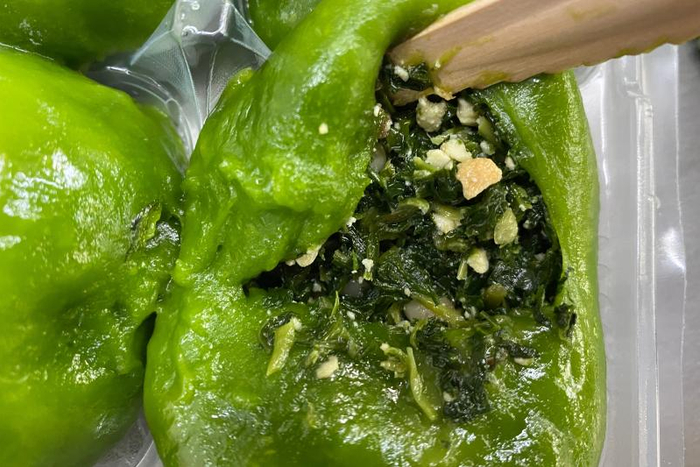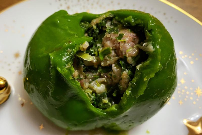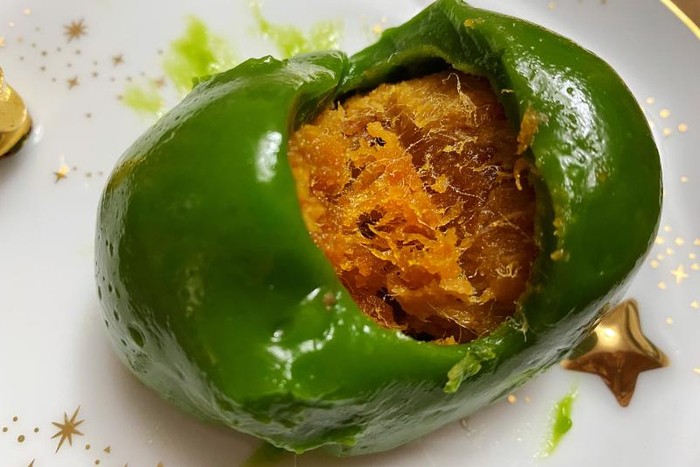 解放日报·上观新闻记者在新雅后厨看到,鸡骨、排骨、火腿等熬制一天一夜后,浓稠并泛着金黄色,这是佛跳墙馅的“金汤”;海参、鲍鱼、鱼唇、火腿等预处理后切丁,与金汤混合,冷冻成半凝固状,作为馅料。蒸熟后,一口咬下去,皮、馅分明,金汤流淌,海参等原料粒粒口感清晰。