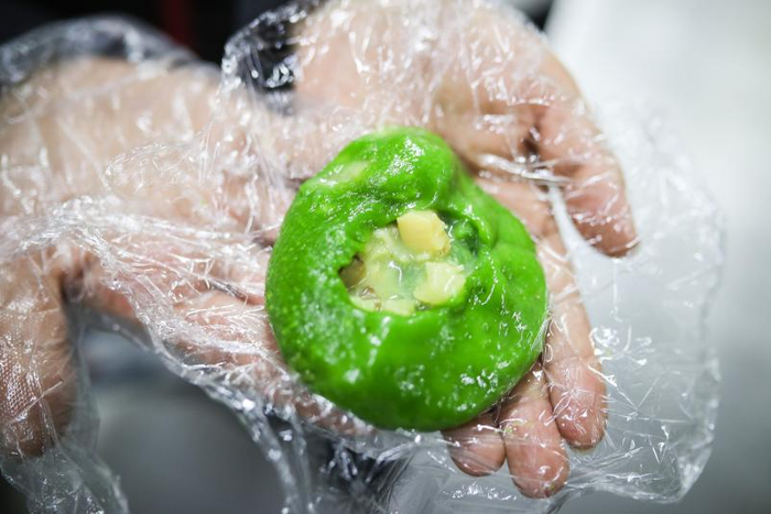不过推荐这两款的消费者表示,实际口味不太辣,而是鲜中带辣、辣里回甘,虽然刺激了味蕾,但青团清爽的表皮刚好中和了辣,回味无穷。还有,馅料非常足。