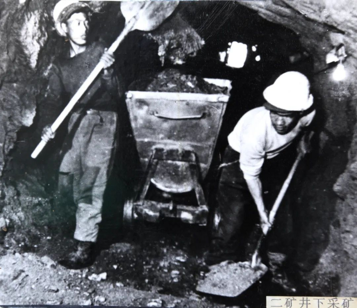 上世纪六七十年代,可可托海矿工在井下装运矿石。资料图片