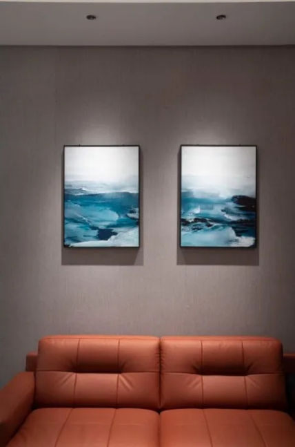 背景墙上照挂画的射灯无多余副光斑,光线柔和无明显截止线,将挂画照得干净漂亮。