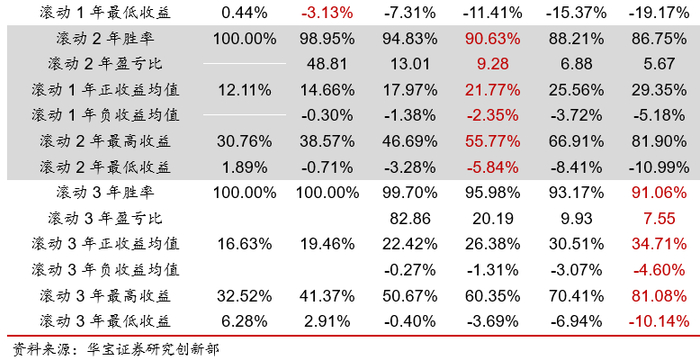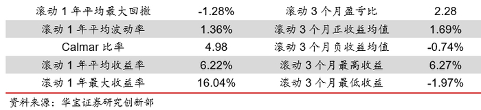 拉长时间来看,组合滚动一年的胜率达到100%,且滚动一年平均收益6.22%。