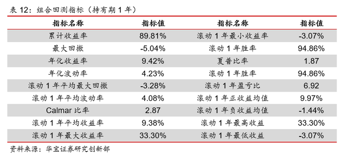 从回测结果来看,该组合滚动3个月的胜率接近94%,且盈亏比达到了2.28,配置具体基金标的的结果相对于基金指数略微有提升。