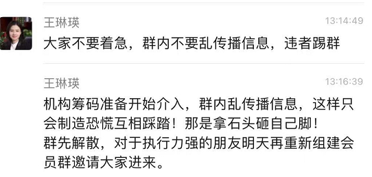 而所谓的美女荐股老师,还在群里喊机构马上介入拉升,还指责群友乱传播消息引发踩踏,最后她把群解散了....