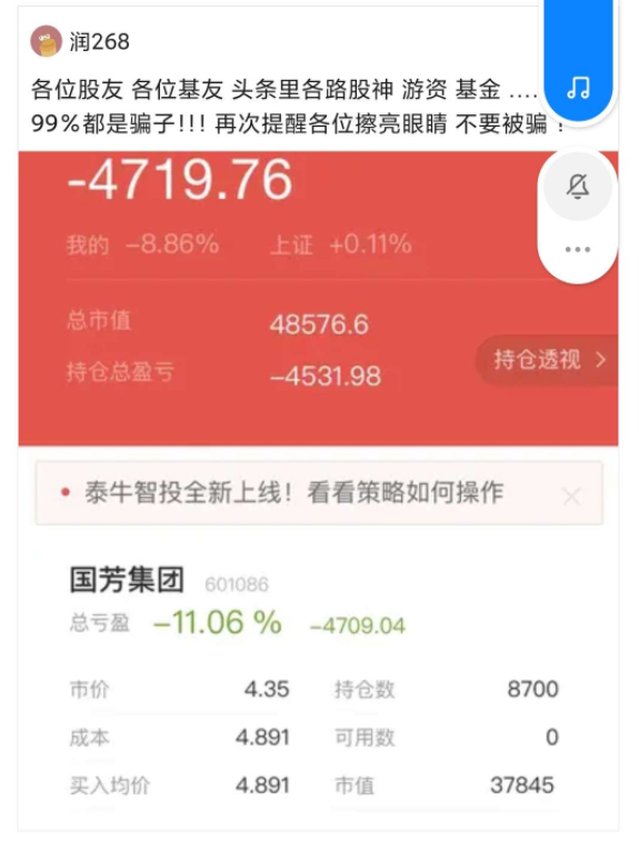 而听信所谓的荐股老师,全仓杀入的,表示自己菜根都被割了。