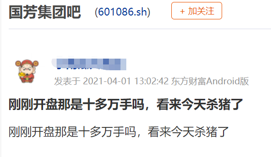 有网友在1日下午开盘后就发帖问,“刚刚开盘那是十多万手吗,看来今天杀猪了”