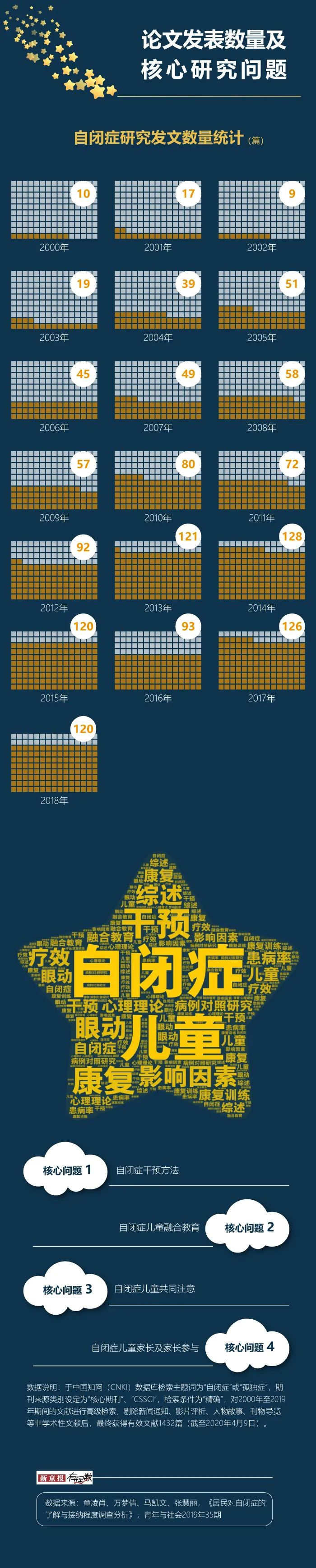与媒体报道以科普宣传为主不同,论文研究则更偏向自闭症的治愈、教育、社会融合等方面议题。这些研究结果也可以为后续研究和实践提供一定启示。