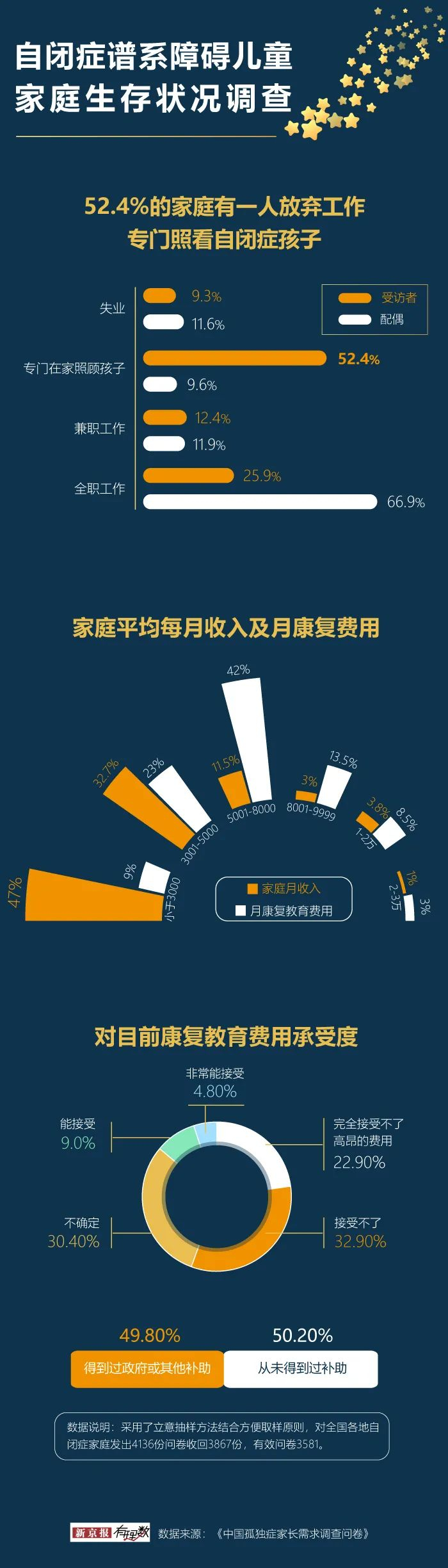 因为康复场所和专业要求都较高,且多数人没有得到补助,所以高昂且延续不断的治疗费用让超过一半的家庭认为难以承担。