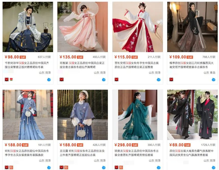 在淘宝上搜索汉服,发货地最常见到的除了杭州、成都和广州,就是山东菏泽。这个位于山东西南部的三线城市,正在跟一线城市争夺中国汉服市场的版图。