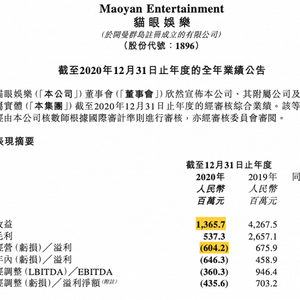 3月30日晚,港股上市的两家明星影视公司欢喜传媒、猫眼娱乐相继发布了各自的财报。去年疫情导致影院关门半年,无论是带着两部春节档影片登场的制作公司欢喜传媒还是两大票务巨头之一猫眼,显然都遭受了不小冲击。
