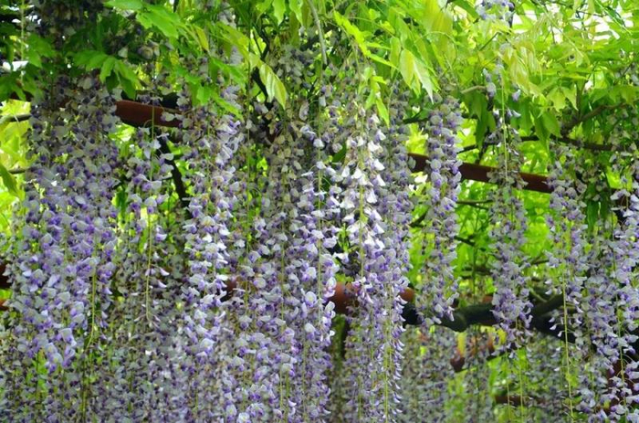 上海辰山植物园共有3条紫藤长廊,总长200多米,往年各座紫藤“瀑布”加在一起的覆盖面积超过3000平方米,主要有粉、白、紫三色。