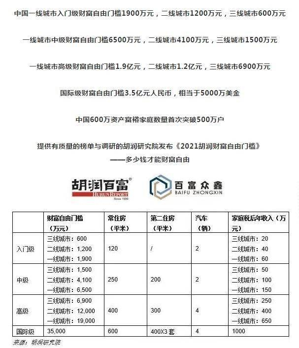 《2021胡润财富自由门槛》——多少钱才能财富自由