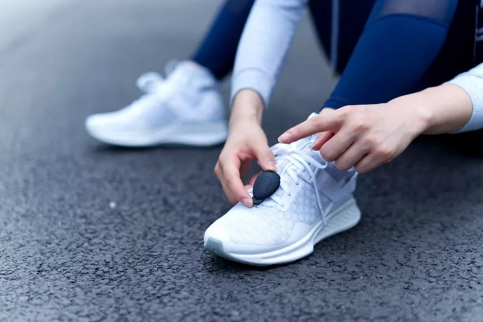 跑步精灵采用卡扣佩戴的方式,除了咕咚跑鞋外,其他任意品牌的系带式跑鞋也可通用。