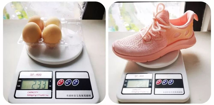 它还非常轻,甚至没有4个鸡蛋重,比篮球运动鞋轻了一半!