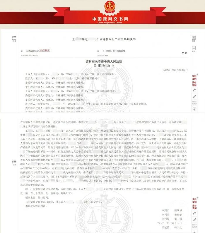 3月15日,长春市中级人民法院二审判决,维持原判,姐姐名下666万元存款归属弟弟所有。/中国裁判文书网